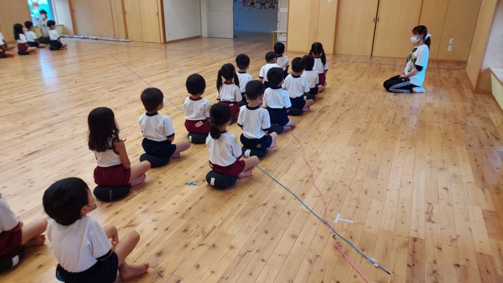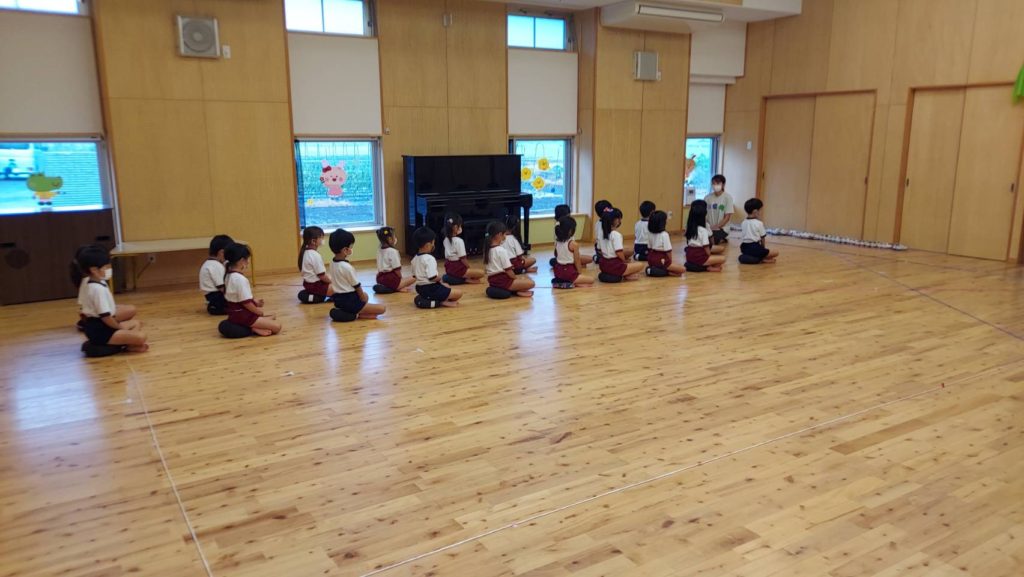 9月目標「ありがとうのきもちでくらそう」! 2021.09.02 2学期最初の坐禅を行いました! 感染症対策のため、分散して行いました(^^)/ 9月目標についてのお話も聞きました♪ 「ありがとう」を心がけると、心があったかくなるね(^_-)-☆ 感染症対策を徹底して通常保育を行っております。 < >