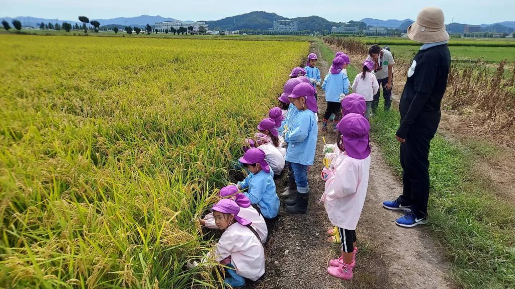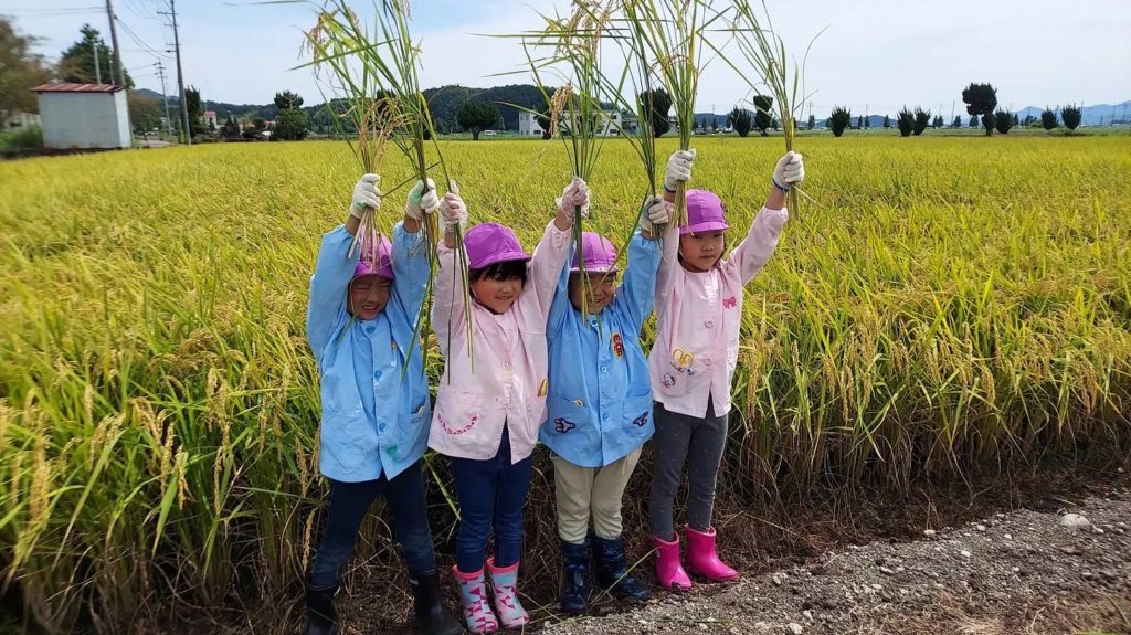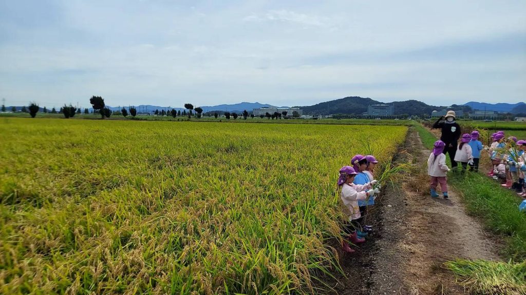 稲刈り! 2021.09.14 稲刈りを行いました! 自分で田植えをした稲を収穫しました(^^)/ お米ができるまでの苦労を体験しました💦 心のこもった「いただきます」「ごちそうさま」を言えるように、ありがたくいただこうね♪ < >