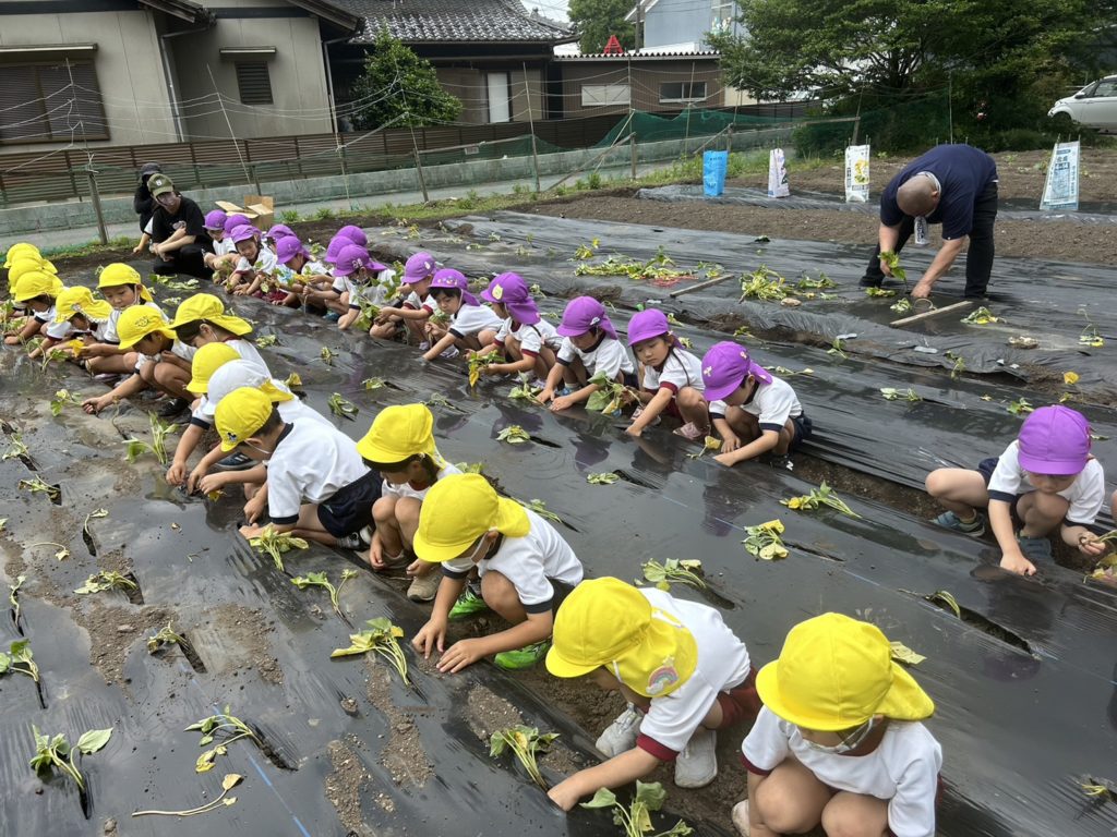あかつき幼稚園では「自分で植えて自分で育てて自分で収穫する」過程を体験し「いただきます」「ごちそうさま」の意味が自然と分かる食育にも力をいれております💪