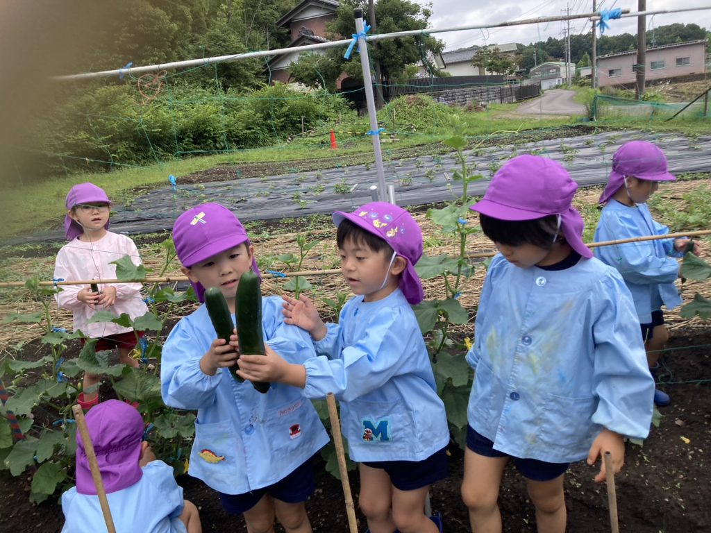 あかつき幼稚園では「自分で植えて自分で育てて自分で収穫する」過程を体験し「いただきます」「ごちそうさま」の意味が自然と分かる食育にも力をいれております💪