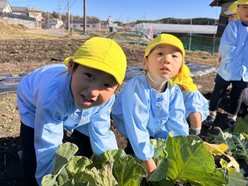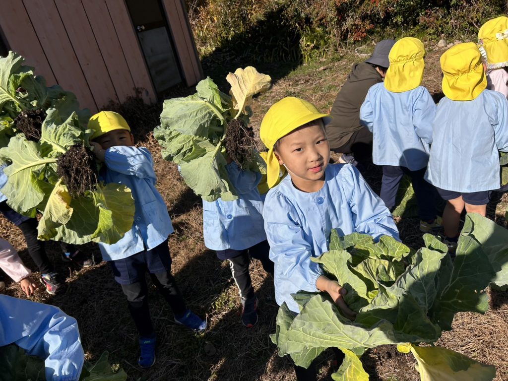 幼稚園の畑のキャベツを収穫しました🎵