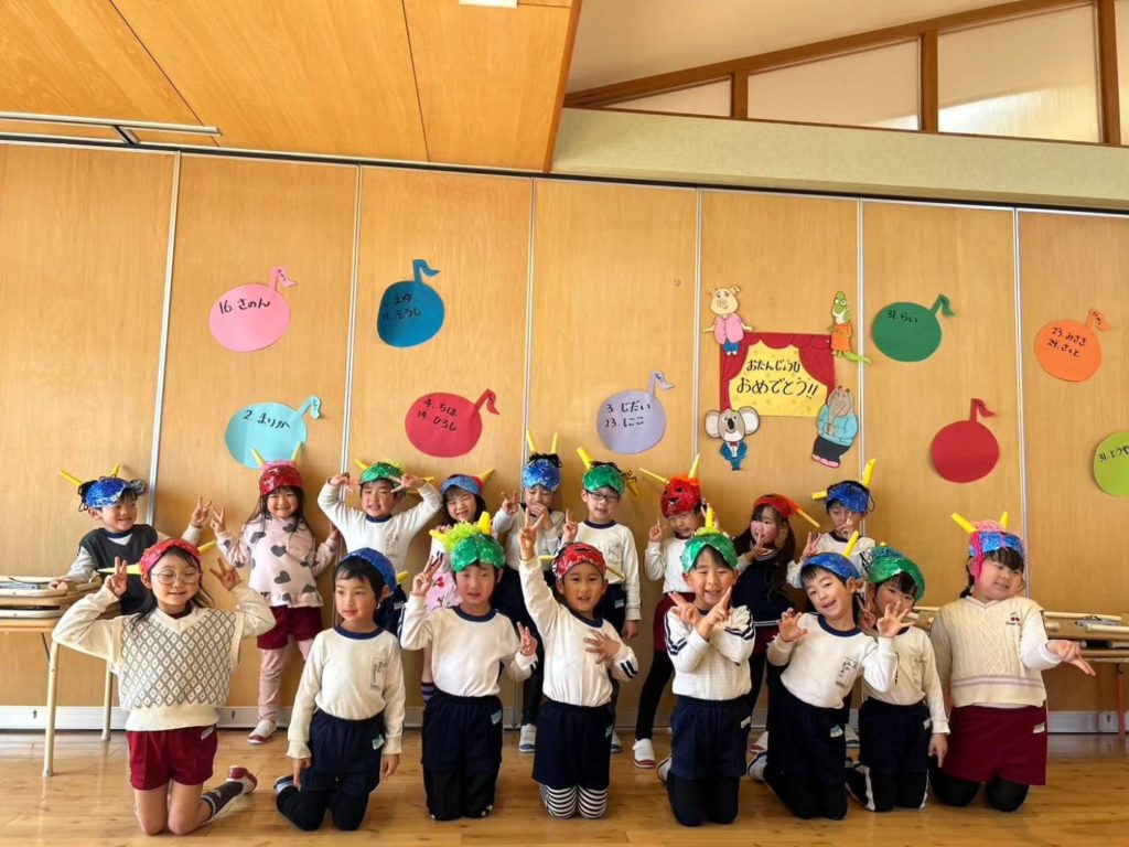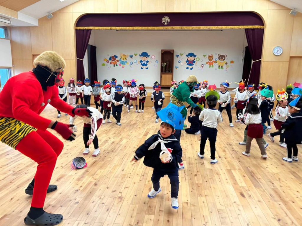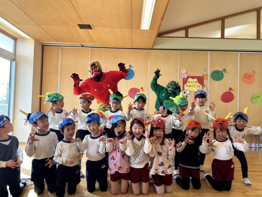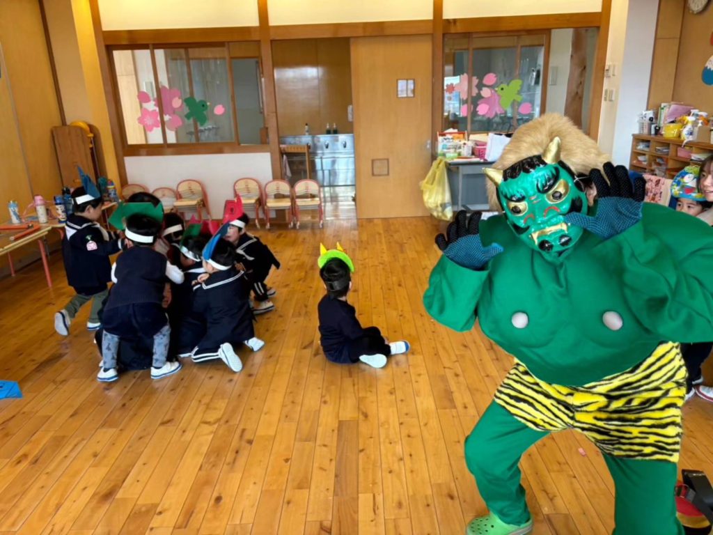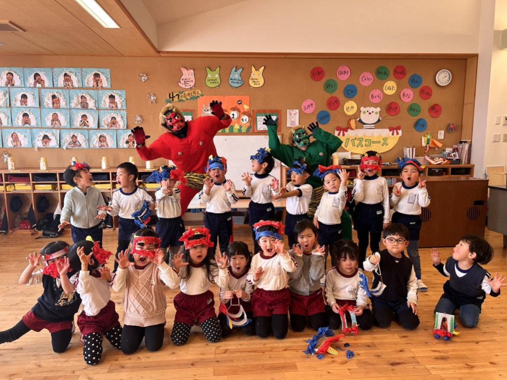 節分! 2024.02.03 節分「豆まき」を行いました👹 「何で節分って言うの?」 「何で豆をまくの?」 お話を聞いてから豆まきを楽しみました🎵 鬼さんを退治できたので嬉しかったね✨ これからも、ありがとうの気持ちで仲良く元気にやり抜こう💪 < >