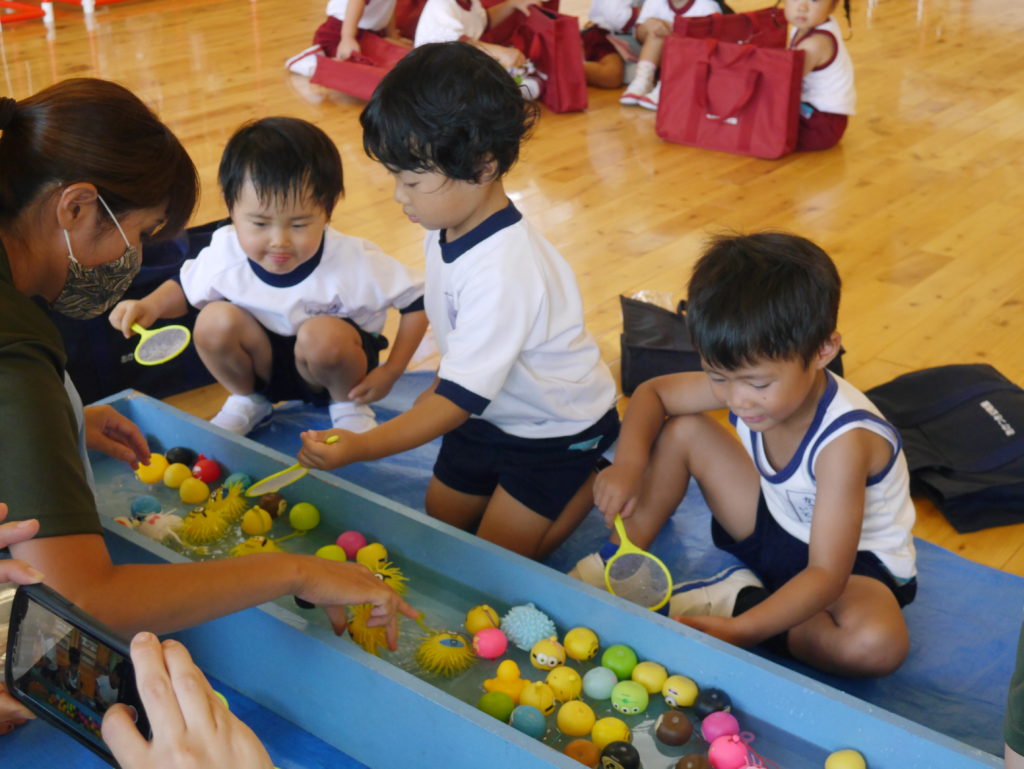 夏祭り! 2020.07.21 今年はコロナの影響で「夕涼み会」は中止になったので、それに代わるイベントとして、クラスごとに「夏祭り」を行いました! 夏祭りの遊びを楽しみました♪ PTA役員の皆様、ご協力ありがとうございました(^.^) < >